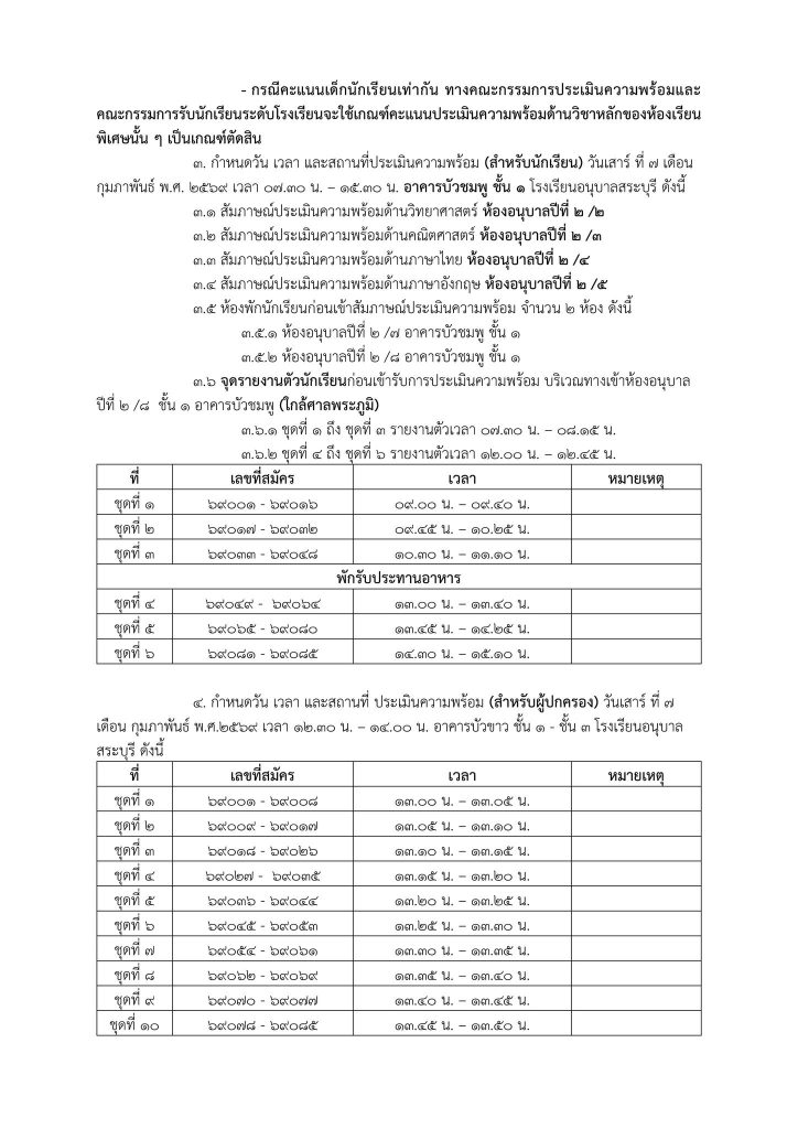 ประกาศโรงเรียนอนุบาลสระบุรี เรื่อง รายชื่อนักเรียนที่มีสิทธิ์เข้ารับการประเมินความพร้อมเข้าเรียนชั้นประถมศึกษาปีที่ ๑ โครงการห้องเรียนพิเศษวิทยาศาสตร์และคณิตศาสตร์ ปีการศึกษา ๒๕๖๙