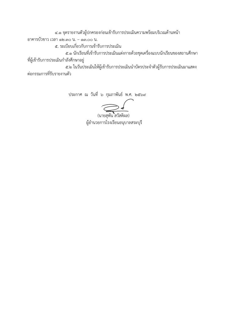 ประกาศโรงเรียนอนุบาลสระบุรี เรื่อง การรับนักเรียนชั้นก่อนประถมศึกษา ระดับชั้นอนุบาลปีที่ ๒ ประจำปีการศึกษา ๒๕๖๙