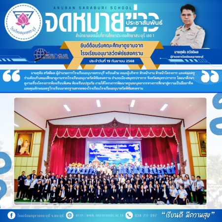 10 พฤศจิกายน 2566 นายสุพัน สวัสดิผล ผู้อำนวยการโรงเรียนอนุบาลสระบุรี เข้าร่วมพิธีพิธีลงนามบันทึกข้อตกลง (Memorandum of Understanding : MOU) ระหว่างสำนักงานเขตพื้นที่การศึกษาประถมศึกษาสระบุรี เขต 1 และสถานศึกษาในสังกัด กับศูนย์การค้าโรบินสันไลฟ์สไตล์สระบุรี โดย ดร.วิภา สายรัตน์ ผู้อำนวยการสำนักงานเขตพื้นที่การศึกษาประถมศึกษาสระบุรี เขต 1 และนางสาวสุรัตน์ดา คงเกิด ผู้จัดการทั่วไปฝ่ายบริหาร ศูนย์การค้าโรบินสันไลฟ์สไตล์สระบุรี เพื่อสนับสนุนการยกระดับคุณภาพนักเรียนระดับการศึกษาขั้นพื้นฐาน ของสำนักงานเขตพื้นที่การศึกษาประถมศึกษาสระบุรี เขต 1 ในการนี้ นายสุพัน สวัสดิผล ผอ.รร.อนุบาลสระบุรี ได้นำการแสดงไปโชว์ จำนวน 1 ชุด ชื่อชุด “มนต์เสียงเพลง ป.4/8” และพิธีกรเด็ก จำนวน 2 คน