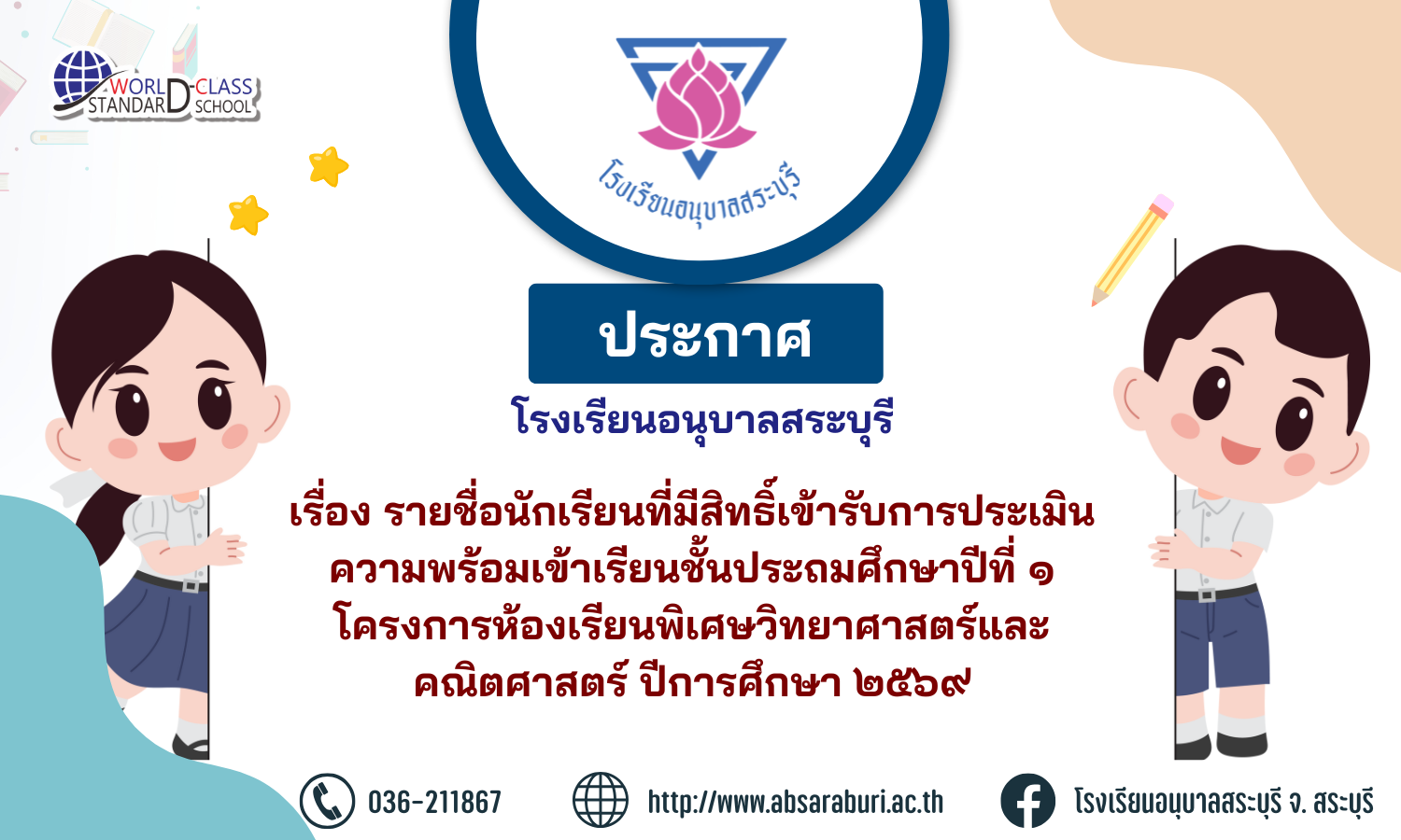 ประกาศโรงเรียนอนุบาลสระบุรี แจ้งหยุดเรียนกรณีพิเศษ ในวันศุกร์ที่ 26 กันยายน 2568