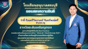 - ขอแสดงความยินดีกับคุณครูวัชเรนทร์ จันทร์พงษ์ศรี ได้รับรางวัลระดับเหรียญทอง การคัดเลือกผลงานวิธีปฎิบัติที่เป็นเลิศ Best Practice ด้านการจัดการเรียนรู้กิจกรรมพัฒนาผู้เรียน (ระดับประถมศึกษา) ประเภทข้าราชการครูและบุคลากรทางการศึกษา ระดับเขตพื้นที่การศึกษาประถมศึกษาสระบุรี เขต 1 ประจำปีงบประมาณ พ.ศ.2568